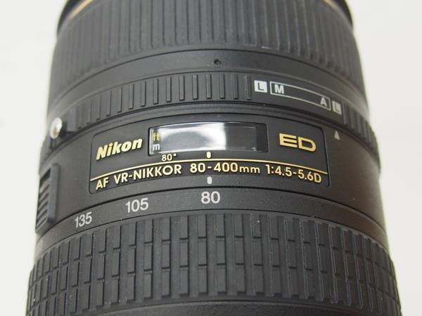 | メーカー:NIKON 型番:AF VR-NIKKOR 80-400mm 1:4.5-5.6D ED シリアルNO:453706 レンズタイプ:ズーム 焦点距離:80~400mm 開放F値:F4.5-5.6 |